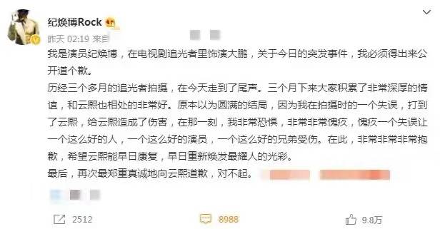 二是网友觉得纪焕博太卑微了,从他的文案看出一个小明星的卑微和惶恐,甚至纪焕博事后因为太过内疚,也扇了自己很多个耳光。作为吃瓜群众,真的不明就里,只能说娱乐圈太复杂了,一个打人的事情,也可以解读出这样多的版本。那么到底什么才是真相呢?也只有坐等当事人的声明了。