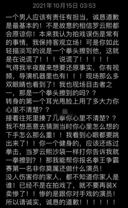 过后纪焕博发了两次道歉声明,第一次发出不久删除了,声明表达了对罗云熙的歉意,只不过这事随着罗云熙粉丝的不满,对于这事的解读也出现了多种版本。一是网友觉得纪焕博是故意的,作为一位体育专业生,有着10年的运动生涯,对于安全距离的掌握,根本就不是问题。据说纪焕博在打罗云熙第一个耳光的时候,力度就非常的大,随后的几拳下去,可谓拳拳到肉。