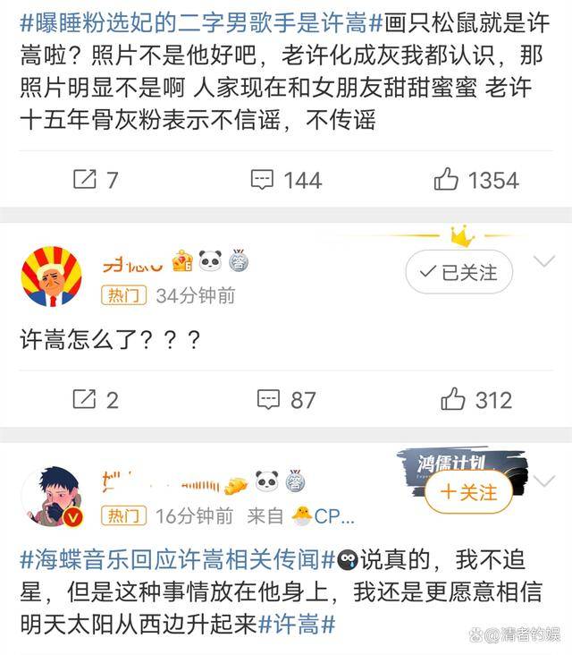 目前许嵩粉丝的态度就是坚决不相信,此前也有过类似的绯闻出来,不过都被辟谣了,大家觉得宁愿相信太阳会从西边出来,都不愿意相信许嵩会做出这样的事情出来,毕竟是很多人的童年男神啊,神一样的存在啊,许嵩所在的海蝶音乐公司只回了三个字:“取证中。”