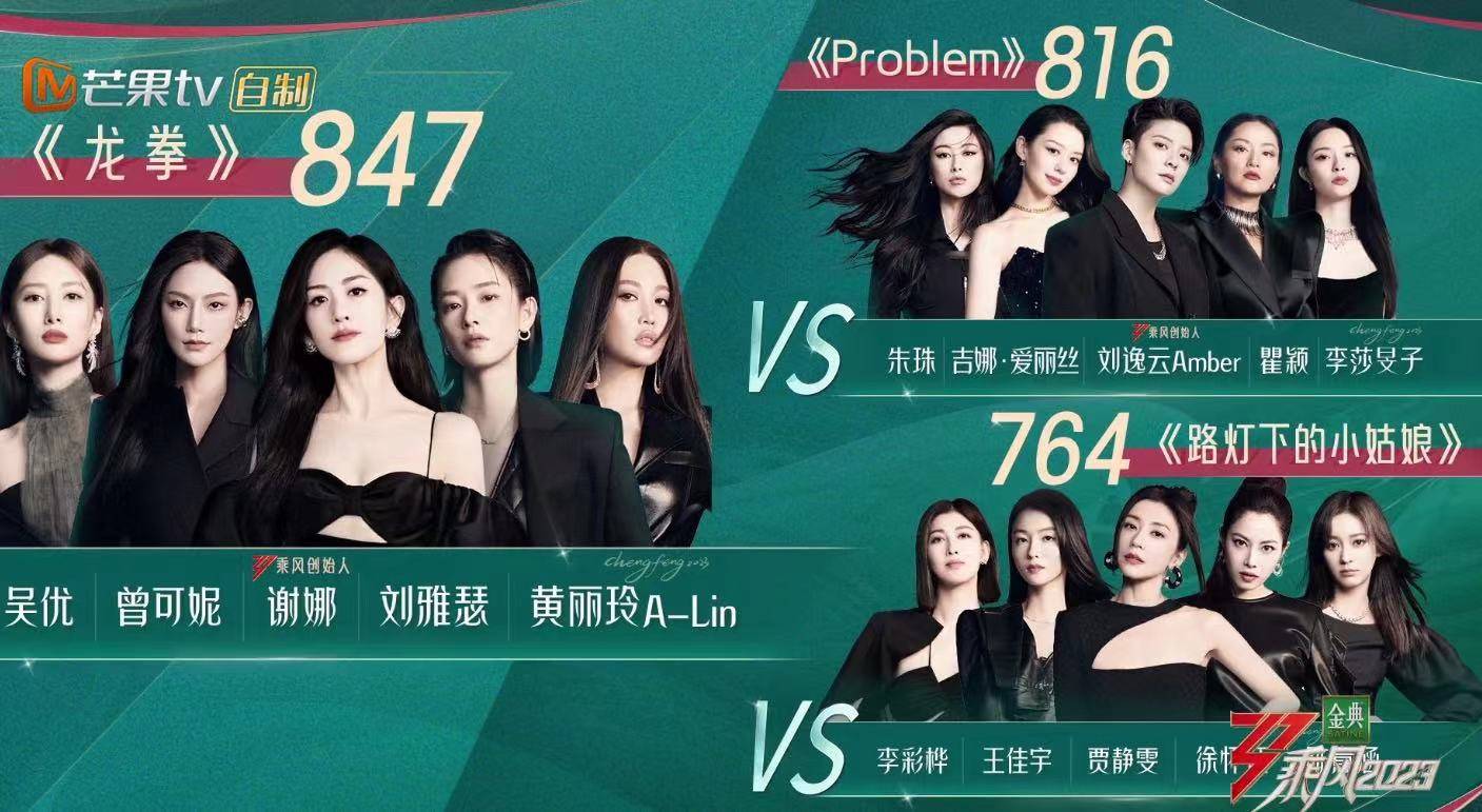 所有姐姐们演完,刘逸云队不是最高分,应该是第三名,第一名是陈嘉桦队的853分,其次是谢娜队的847分,其次是刘逸云队的816分,可能全员安全,没人被淘汰。