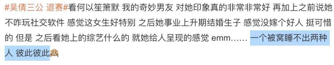 要说吴倩退赛的原因,只因参加了《你好星期六》一期综艺,她的一句:男人之间的友谊是比较纯粹的!让网友满头问号。