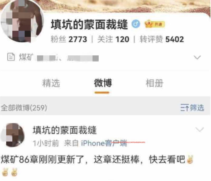 ↑“填坑的蒙面裁缝”发布文章更新信息