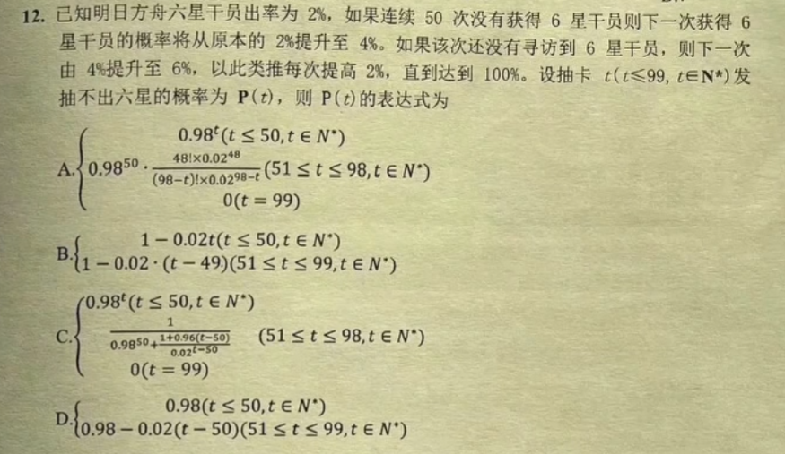 在《明日方舟》版本的高考题中,一道简单的概率题可以让你下一次抽卡歪掉时能明白背后的数学原理。