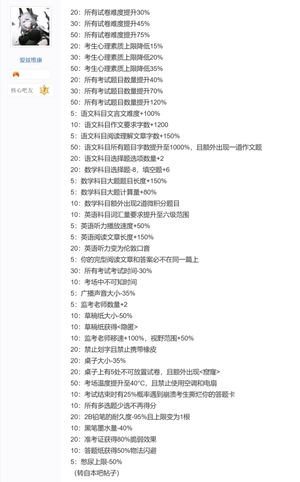 贴吧的老哥直接就开启了整活大战——魔改游戏技能助力高考大秀。