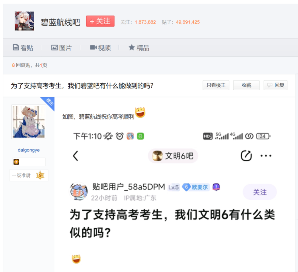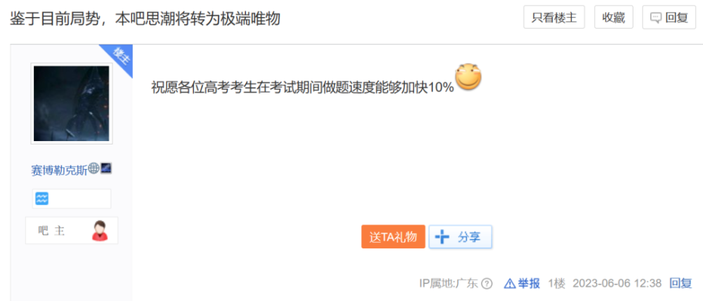 随后吧主直接下场把这个老活新整带到了新的高度,与吧友单纯的恶搞不同,吧主直接格局打开给考生们送上了真挚的祝福: