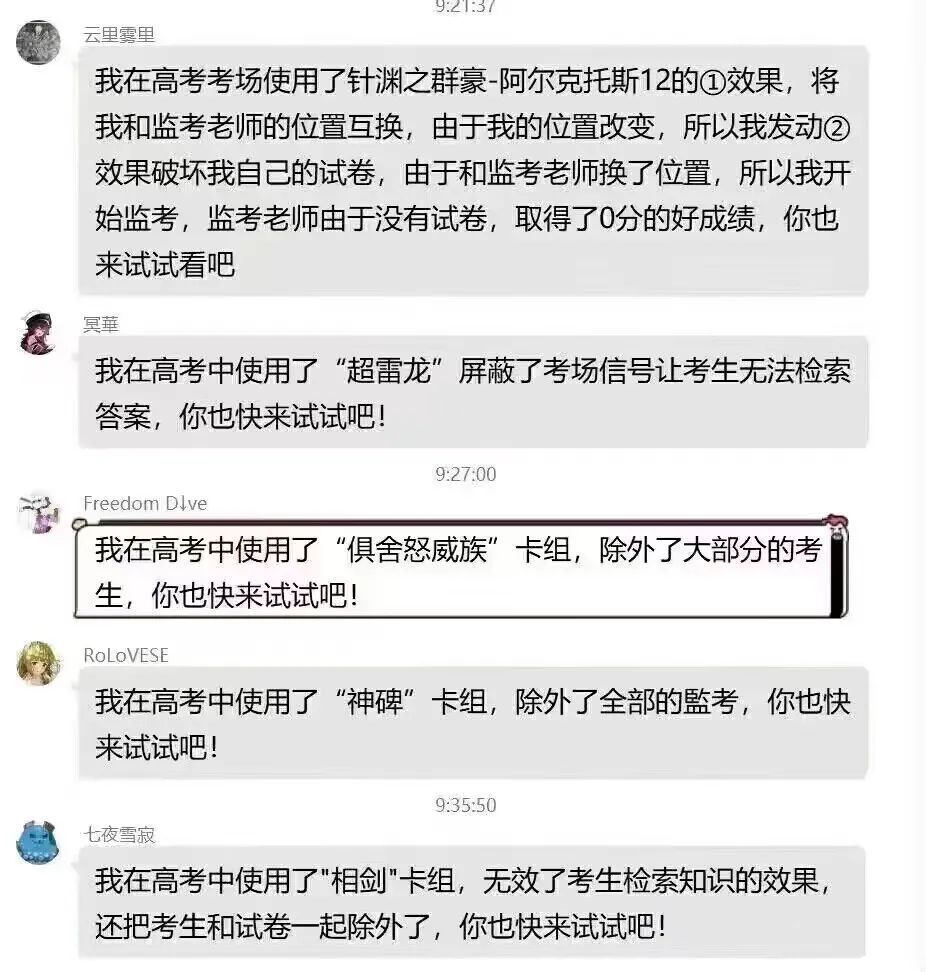 这股“高考道具赛”的浪潮席卷了几乎所有游戏社区,只不过根据游戏不同,整活的质量也有很大差别,总体看下来,越是硬核的游戏,就越有节目效果,比如《游戏王》: