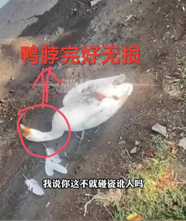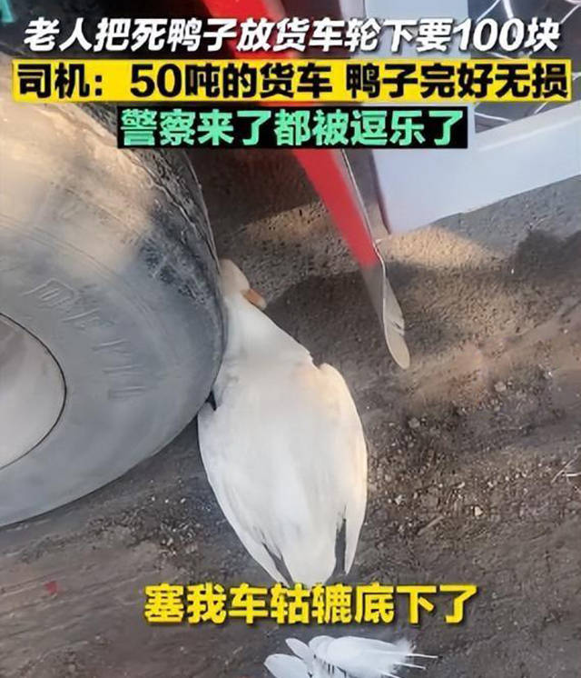 近日在辽宁葫芦岛,老人把死掉的鸭子塞在货车车轮下,向司机索要100块钱。