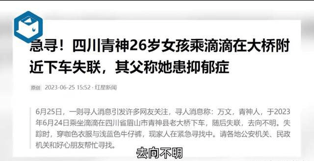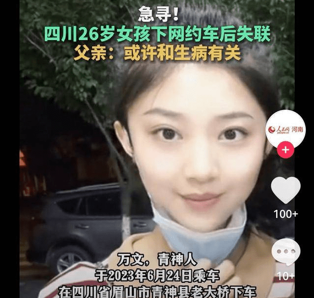 四川26岁女孩下网约车后失联 眉山青神女孩万文最新消息为什么失踪?