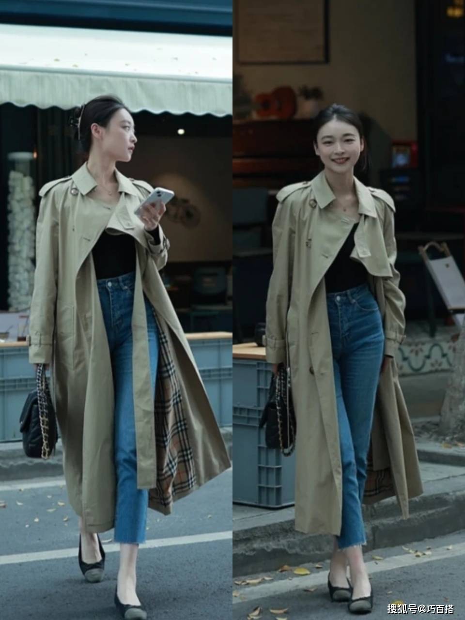 用风衣和修身九分牛仔裤搭配,不仅可以满足上班族的穿衣需求,而且还能利用单品长度和宽松度的配合展示完美身材,和谐洋气又亮眼。