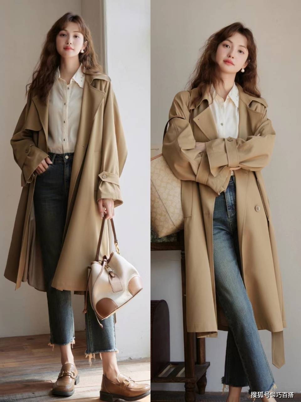 今年秋天风衣和修身九分牛仔裤是捆绑在一起的,除了单品固定不变外,下面其他几方面也是需要保持不变的。