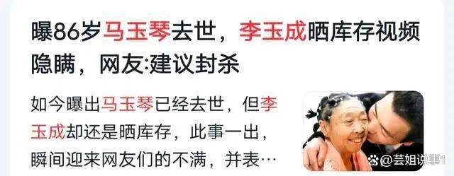 近日,网上曝出马玉琴已经去世,而李玉成还晒他们之前拍的库存来隐瞒,这件事引发了热议,有网友对此表示不满,建议封杀。